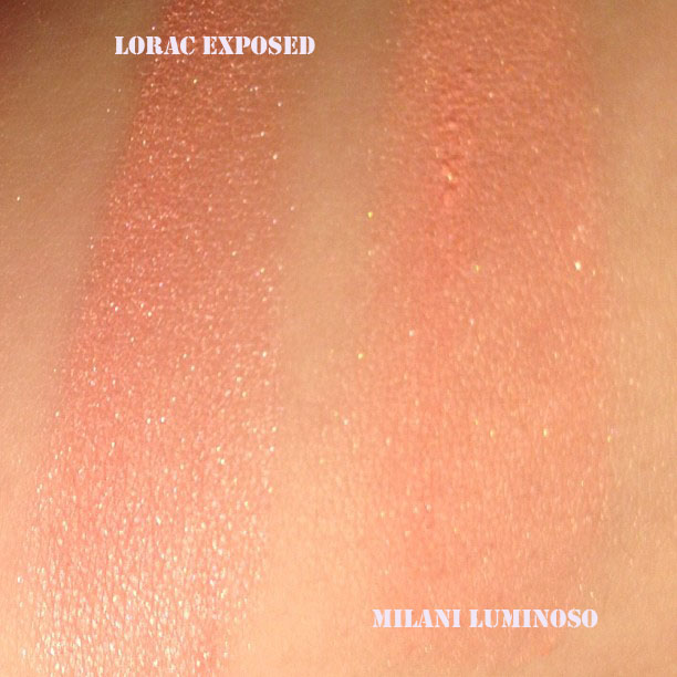 I've had these blusher for a while now, my favorite one is Luminoso. It's a gorgeous peach color that's perfect for the summertime. It's also the wearable shade for me, since I can just slap it on without too much worry. All three are incredible pigmented with Fantastico Mauve being the most pigmented one. I use a very light hand to apply Berry Amore and especially Mauve Fantastico (or you will look like a clown!). They all have shimmer in them so be extra careful if you have large pores as the shimmer can draw attention to them. Lasting power is very good. You can purchase them on the Milani website or at Walgreens, and CVS. Onto the swatches and possible dupes!